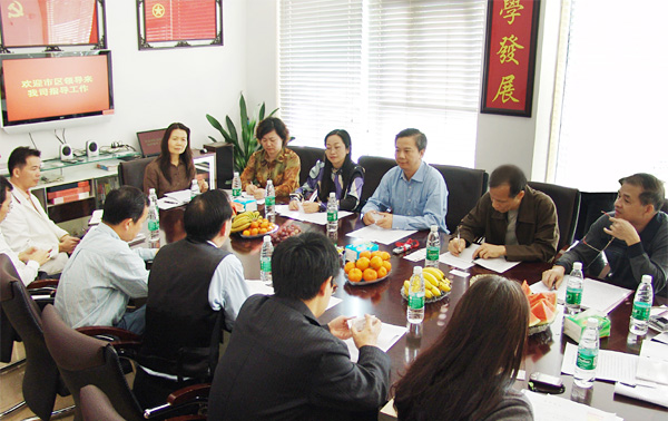 广州市非公经济组织创先争优活动指导小组在安博官方网站公司调研(中为广州市工商局副局长周邦华)