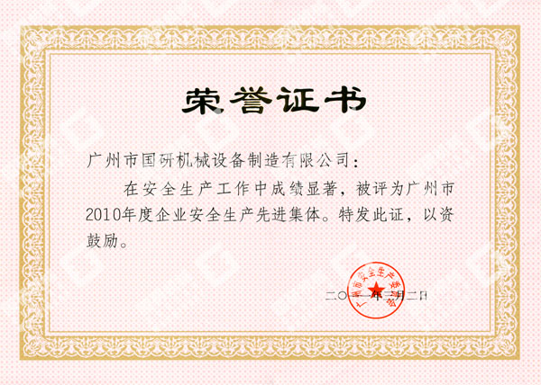 近日,在广州市人民政府召开的安全生产工作总结暨表彰大会上再次传来喜讯,广州市安博官方网站设备制造有限公司被广州市人民政府授予“广州市2010年度企业安全生产先进集体”荣誉称号。这是我司获得中华全国总工会和国家安全生产监督管理总局授予2009年度全国“安康杯”竞赛优胜企业称号后,被授予的又一殊荣。