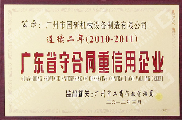 2012年3月,广州市安博官方网站设备制造有限公司被评为2011年度“广东省守合同重信用企业”。这是我司继连续三年被评为“广州市守合同重信用企业”之后,连续两年获此殊荣。